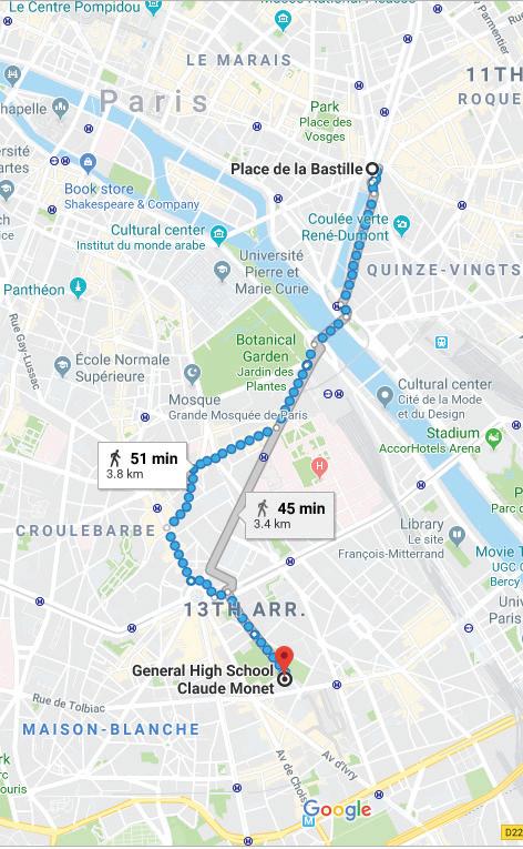 Suivez le GPS du lycée Claude Monet jusqu’à la place de la Bastille