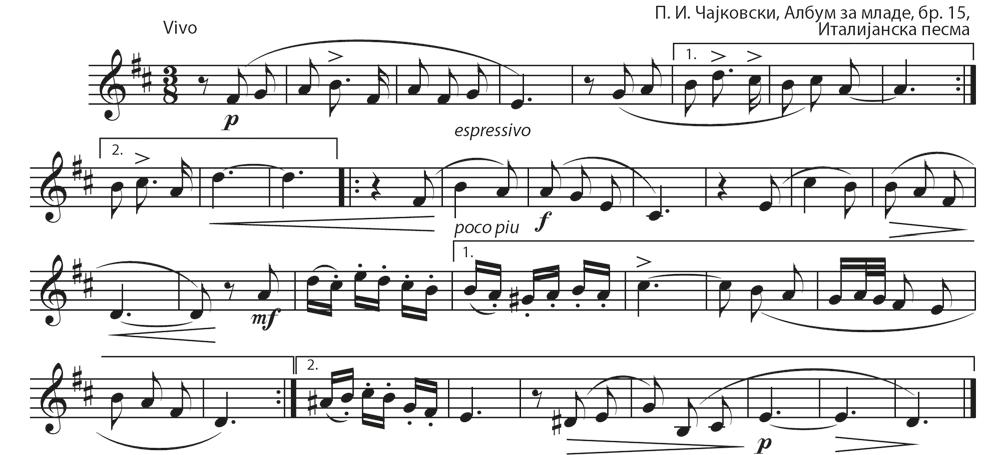 • П. И. Чајковски, Албум за младе, оп. 39, бр. 15, Италијанска песма (P. I. Tchaikovsky, Italian Song, Op. 39, No. 15)