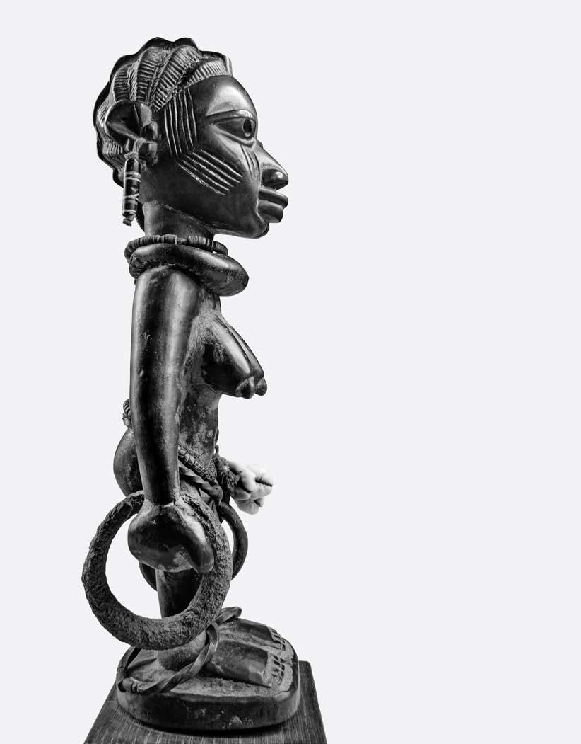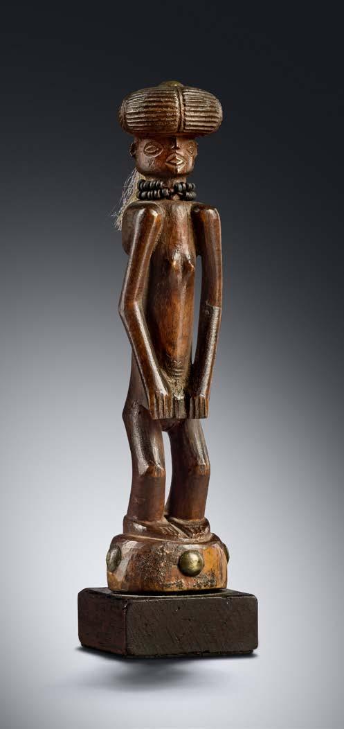 to come rather from different hands. This female figure carries a bowl (with the curled body of a snake) on her head. Blackmun Visonà suspects that these figures were used by traditional healers to convey messages to the spirit world. The bowl would emphasise the figure‘s role as a messenger of the spirits (Blackmun Visona in: Art of Côte d‘ Ivoire, Vol II, 1993, p. 171, ill. 289).