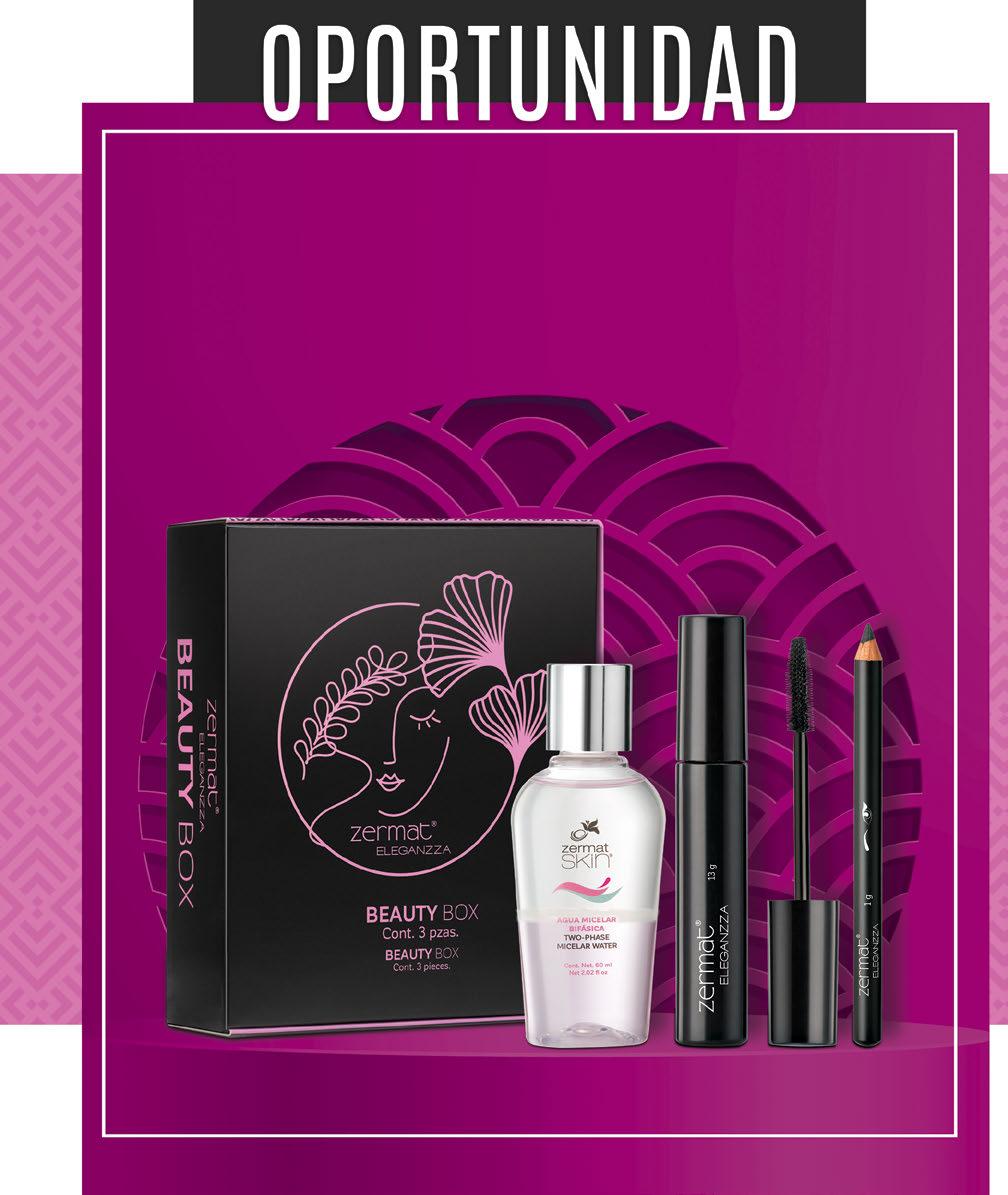61554 Set Beauty Box 3 Piezas $389.90* Ideal para todo tipo de pestañas. Punta para definir la intensidad que desees. Desmaquilla, tonifica y limpia tu rostro. 60 ml Incluye: Agua Micelar 3 en 1 60 ml. 1 Máscara para Pestañas Beauty Lashes 13 g. 1 Delineador para Ojos Ultra Black 1 g. ESTUCHE LISTO PARA REGALAR COMPRANDO $600 DE TODO EL CATÁLOGO, LLÉVATE UN ESTUCHE BEAUTY BOX $139.90* POR MÁS PROMOCIONALES 99 *Precio de Contado