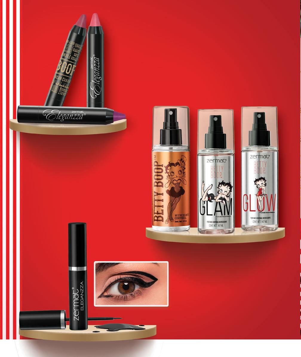 LIMPIADORES MICELARES LABIAL MATE MÁSCARA PARA PESTAÑAS 92091 Agua Micelar 3 en 1 200 ml Fórmula multibeneficios, retira el maquillaje a prueba de agua. $259.90* 39763 Gel Limpiador Espumoso Micelar 120 g Ideal para limpiar e hidratar tu rostro, sin sensación de resequedad. $194.90* Sensual Red 31065 Sexy Cherry 31644 Spicy Amber 31645 Rose Wood 31646 Labial Acabado Mate 4 g Textura cremosa con alta c arga de color. Acabado mate con gran sensación de suavidad y gran permanencia durante el día. $179.90*c/u 98146 Máscara para Pestañas Betty Boop 10 g Envuelve cada pestaña en color negro intenso para mayor definición y longitud. $209.90* 98198 Máscara para Pestañas Extreme Lashes 15 g Cepillo tipo peine que aporta definición y longitud a tus pestañas evitando los grumos. $209.90* 24 zermat.com.mx *Precio de Contado
