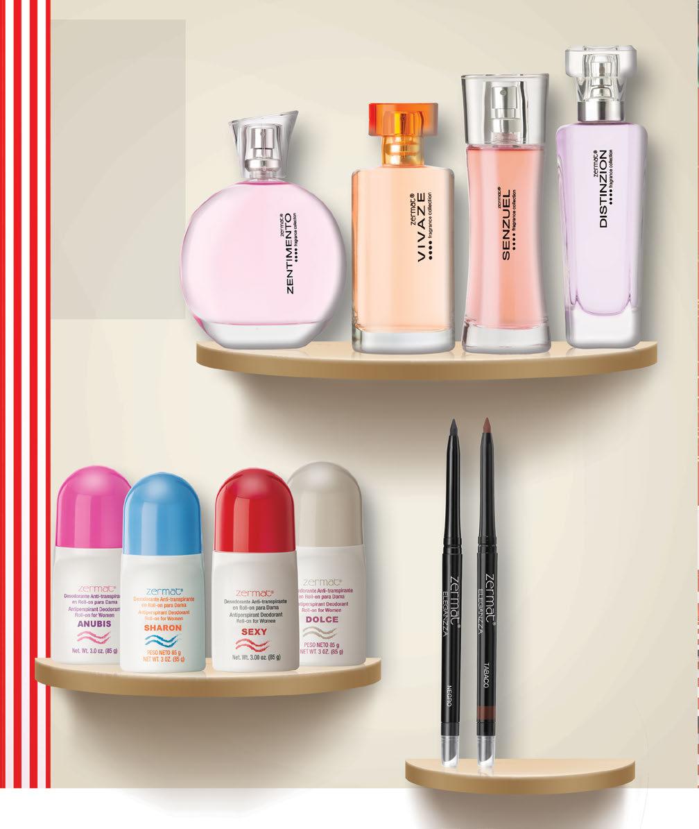 FRAGANCIA DAMA 60 ML DELINEADOR PARA OJOS SI ERES ROMÁNTICA: FLORAL - FLORAL Anubis 42187 SI ERES SENSUAL: FLORAL - CÁLIDA Sexy 42199 SI ERES ELEGANTE: FLORAL - GOURMAND Dolce 42321 SI ERES MODERNA: FLORAL - FLORAL Sharon 42192 Eau de Parfum ZFC 60 ml $329.90*c/u Delineador para Ojos Larga Duración 0.35 g Fórmula cremosa de alta pigmentación. Punta retráctil. Con sacapuntas y difuminador incluido para lograr una gran diversidad de estilos. $149.90*c/u 35136 Negro 35133 Tabaco Anubis Sharon Sexy Dolce DESODORANTE DAMA Desodorante Anti-transpirante en Roll-On ZFC 85 g $79.90*c/u 45274 45266 45260 45244 Mandarina, Fressia y Sándalo. Bayas Rojas, Orquídea y Rosa. Gardenia, Violeta y Caramelo. Grosellas, Haba Tonka y Vainilla. 20 zermat.com.mx