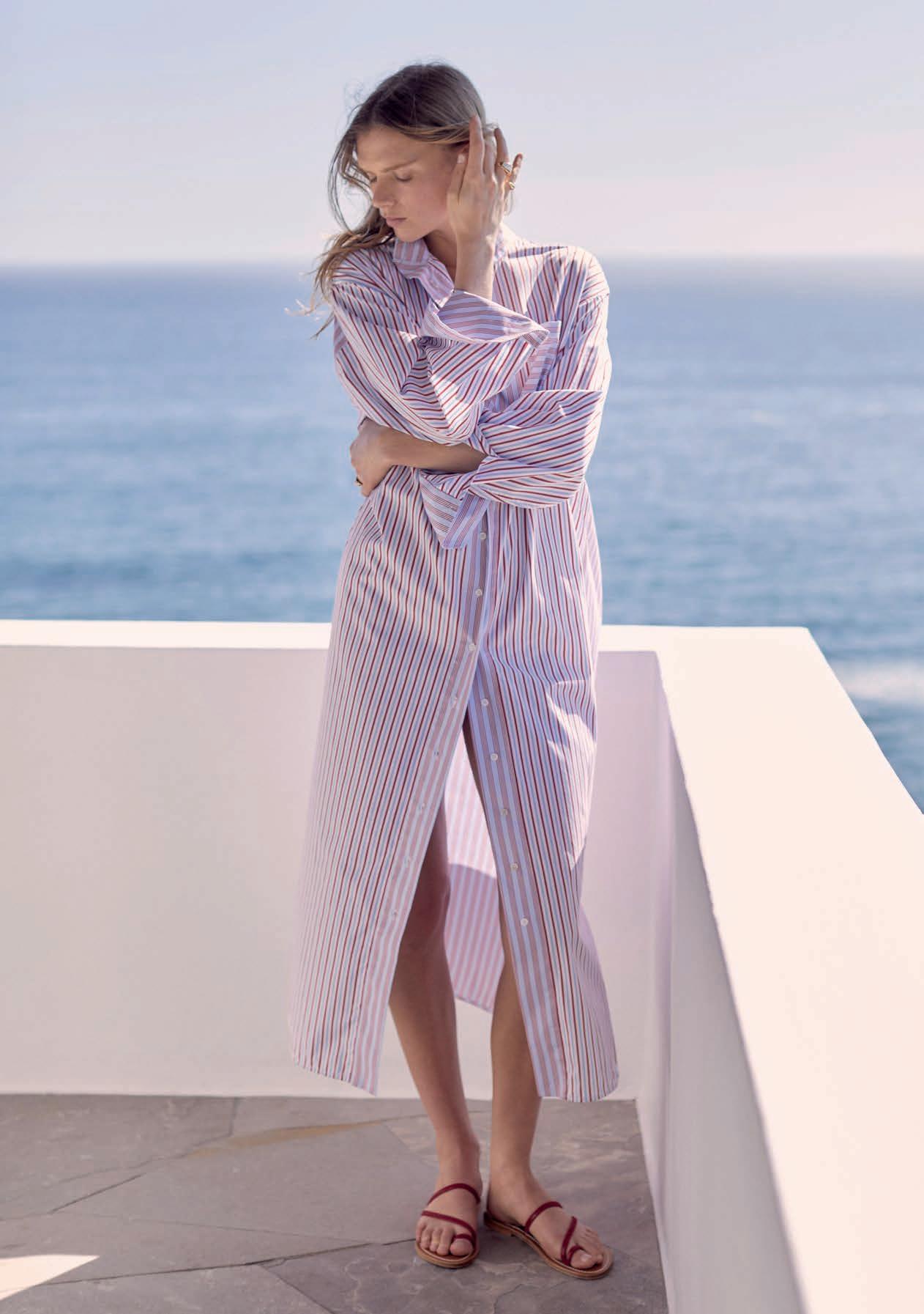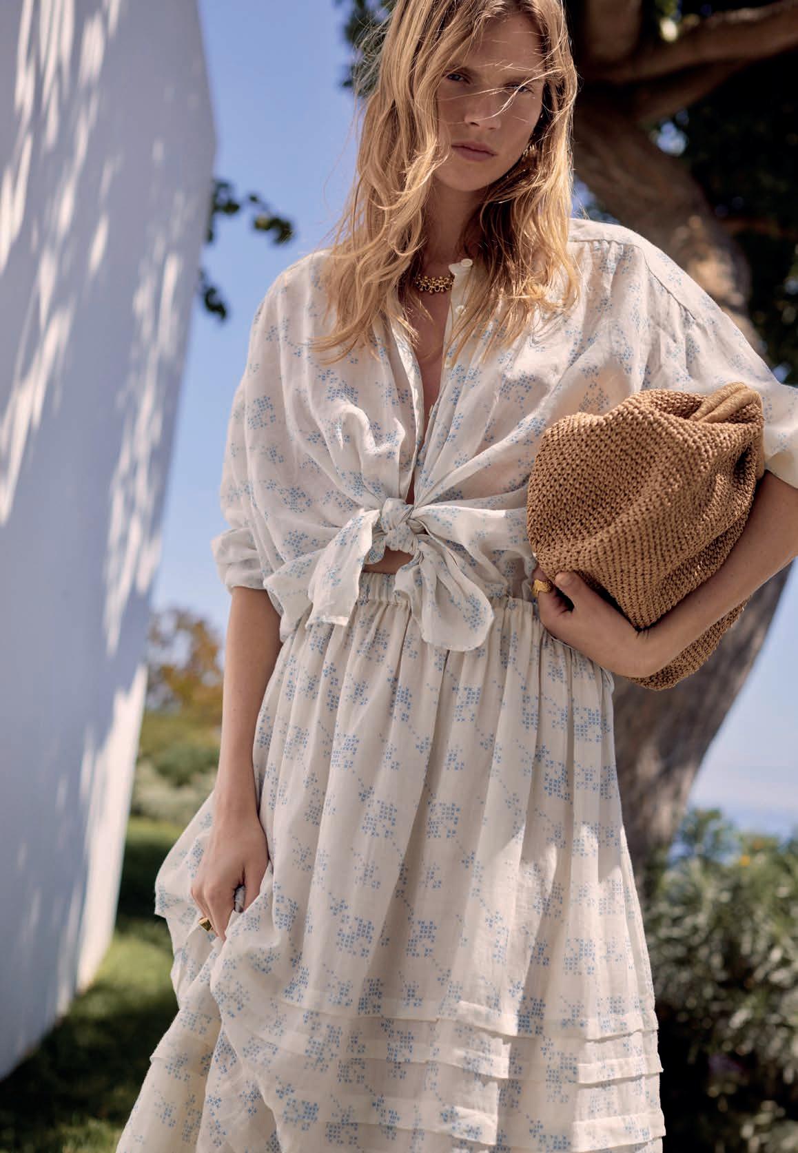 Ciao Mamma!, Mother's newest collaboration with La DoubleJ, combines California cool with Milanese maximalism. The Lela midi dress is designed with a crewneck, boxy short sleeves, a gathered waist, narrow fit and a calf-length hem. motherdenim.com