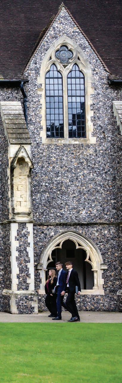 A So many things! On my very first visit, I was struck by the enthusiasm, thoughtfulness, and good humour of the pupils. I was especially inspired by the Foundationers Campaign, which works to provide bursary places to young people who might not otherwise have access to a Lancing education. Lancing combines a rare and powerful blend of academic ambition, exceptional pastoral care, and co≠curricular breadth. It has a deeply committed sta!, a vibrant community, and a setting that must be one of the most breathtaking in the UK.