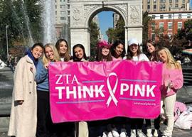 [9] Sisters of Lambda Theta Chapter (New York University) share their Think Pink® pride.