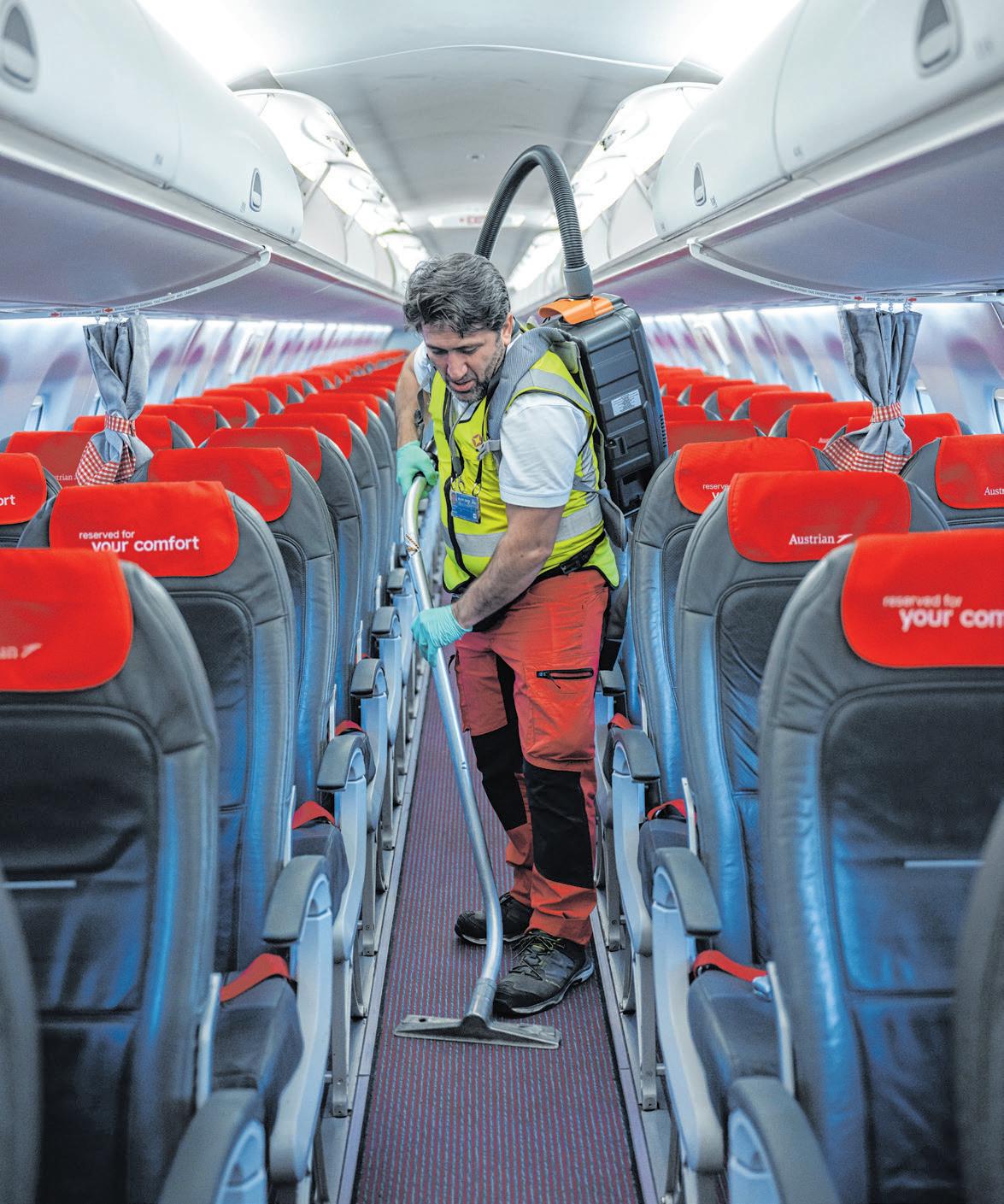 Seit einiger Zeit behilft sich das Reinigungsunternehmen mit mobilen Akku-Staubsaugern bei der Reinigung von Flugzeugen.