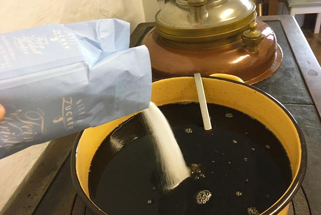 3. Eineinhalb mal so viel Zucker zusetzen wie Menge an Filtrat und mehrmals umrühren.