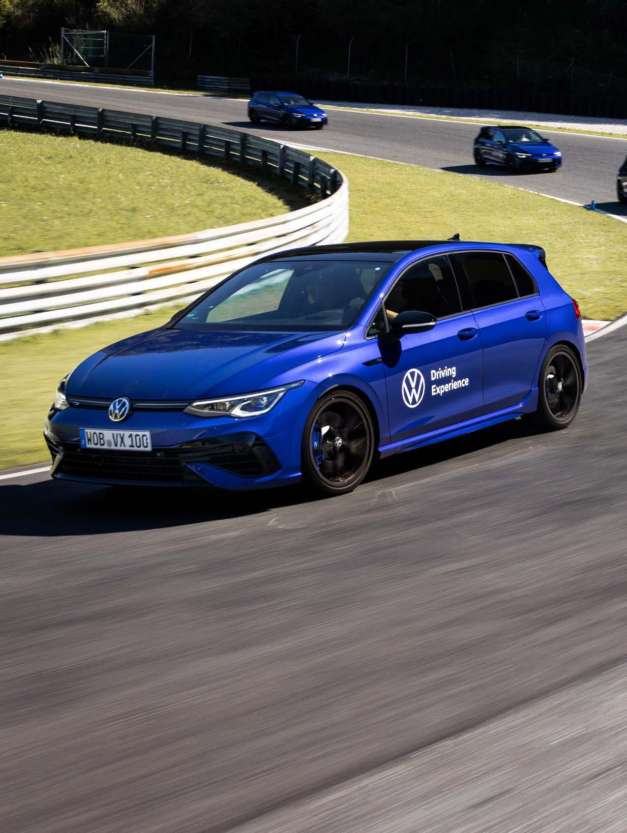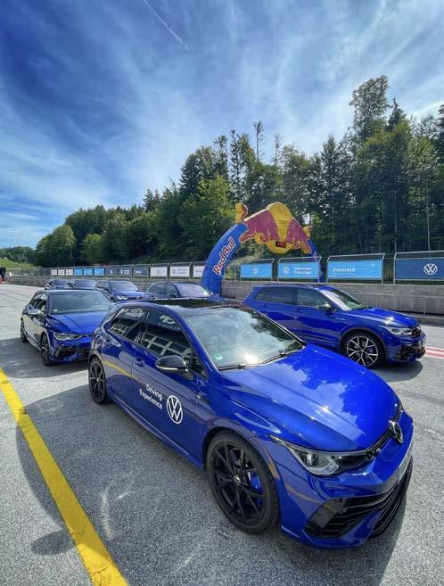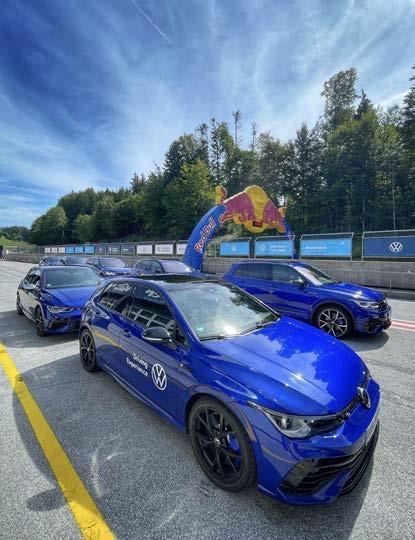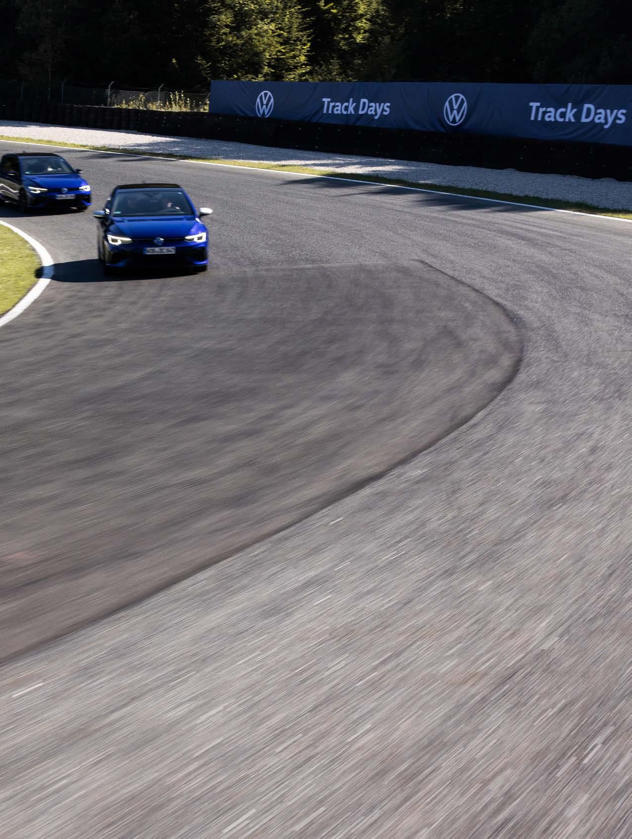 R aus aus der Boxengasse fliegt der schnelle Golf auf die Nocksteinkehre zu. Am Kurven ausgang kann das Torque Vectoring seine ganze Stärke ausspielen. Durch den enormen Grip sind auf der Gegengeraden mehr als 230 km/h möglich, bevor es vehement in die Eisen geht. In der Spitze erreicht der Golf R gar 270 km/h und beschleunigt in 4,6 Sekun den auf 100 km/h. Die z wölf Kurven auf dem 4,2 Kilometer langen Salzburgring meistert das Jubiläumsmodell mit Bravour. Die fest zupackende Bremse lässt auch nach mehreren Runden keine Schwäche erkennen.