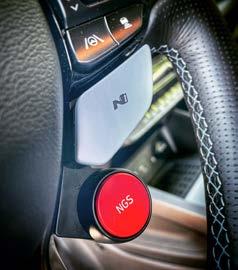 Feine Sportsitze in Alcantara dominie ren den Innenraum, die beiden Displays kennt man von den anderen KonaModellen. Der rote „NGS“ Schalter am Lenkrad dient der zusätzlichen Bespaßung. „NGS“ steht für „N Green Shift“ und stellt auf Knopfdruck jegliche Einstellungen im Kona für 20 Sekunden auf die sportlichste Stufe.