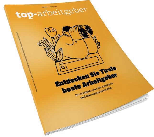 Impressum: top.tirol – Juli 2024 Medieninhaber und Verleger: TARGET GROUP Publishing GmbH, Brunecker Straße 3, 6020 Innsbruck, Tel. 0512/586020, office@target-group.at, www.target-group.at • MitarbeiterInnen dieser Ausgabe: Daniel Feichtner (Ltg.), Michaela Ehammer, Anna Füreder, Markus Wechner, Barbara Kluibenschädl • Grafik: Thomas Bucher • Fotos sofern nicht anders gekennzeichnet: Axel Springer, Franz Oss, Gerhard Berger • Gesamtverkaufsleitung: Wolfgang Mayr • Verkauf: Tanja Ischia, Hannah Aumayr • Hersteller: Intergraphik GmbH, Innsbruck
