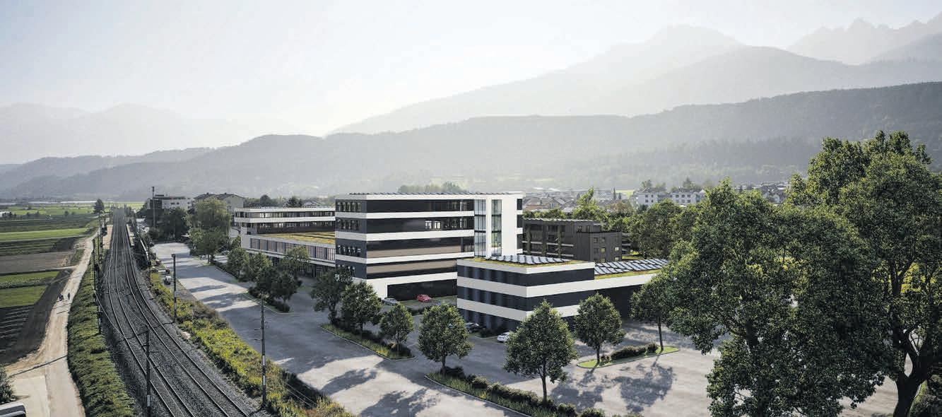 umfasst das Areal des im September eröffneten Syncraft-Firmengebäudes in Schwaz. Der neue Standort des Green-Tech-Unternehmens bietet Platz für 100 MitarbeiterInnen und kommt vollständig ohne fossile Heiztechnologien aus.