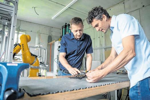 nen genau definierbare Flexibilität verleihen, arbeiten die Gründer. Die Sättel erreichen mittlerweile eine Stabilität und Flexibilität, die sich mit der von reinen Carbon-Varianten messen kann, und sind nur unbedeutend schwerer. Die Laufschuh-Zwischensohlen toppen das sogar: Sie wiegen in etwa die Hälfte der bisher eingesetzten Mattenlösung. Der wichtigste Aspekt ist aber die Massenfertigung. Fibionic hat nahezu den gesamten Ablauf automatisiert. Das schlägt sich auch