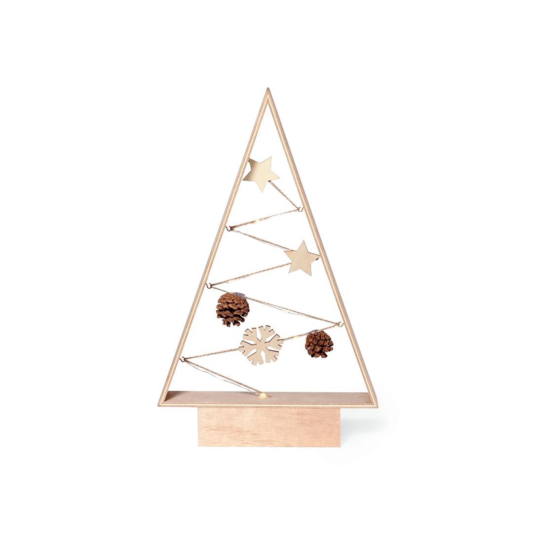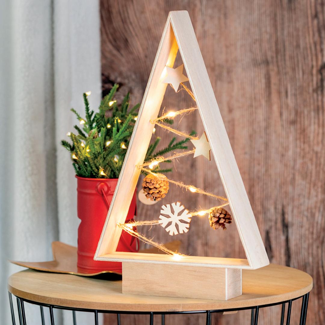 Modern and elegant Christmas tree made of natural wood An original decorative complement featuring ornaments in natural materials, all of them lit by a braiding of leds, ideal for creating a cozy atmosphere.