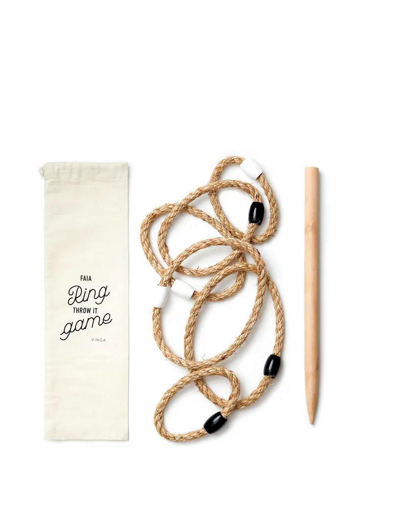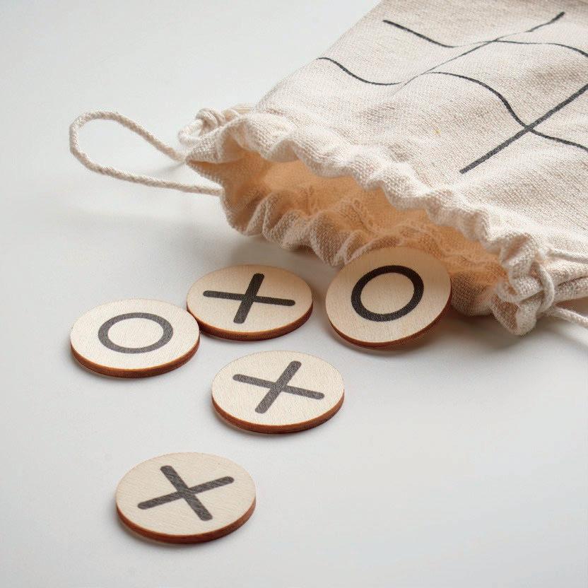 Bowling set made of resistant natural pine wood, each skittle top lacquered in white. Set of 9 skittles and 3 white balls, in a 100% cotton carry bag with matching drawstring.
