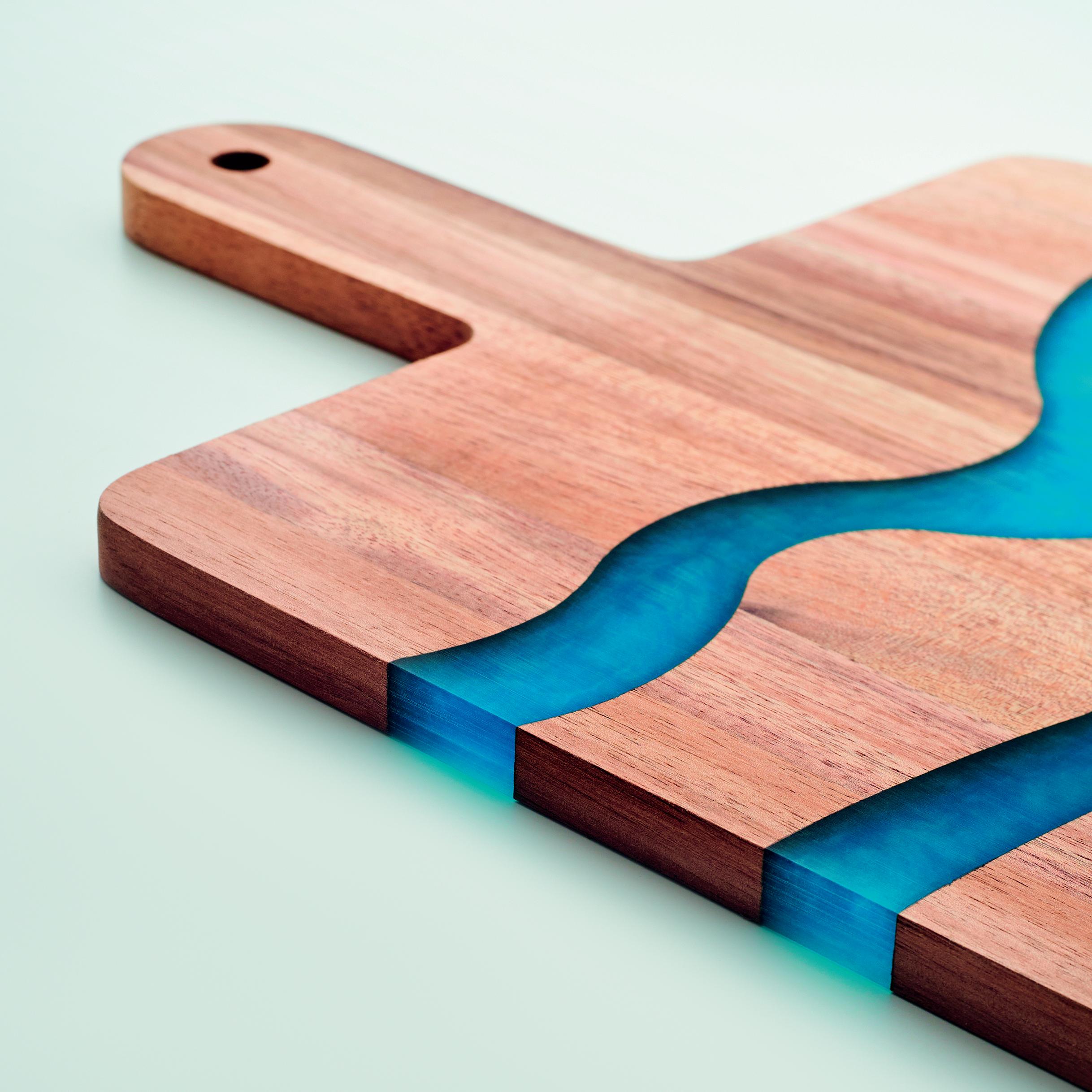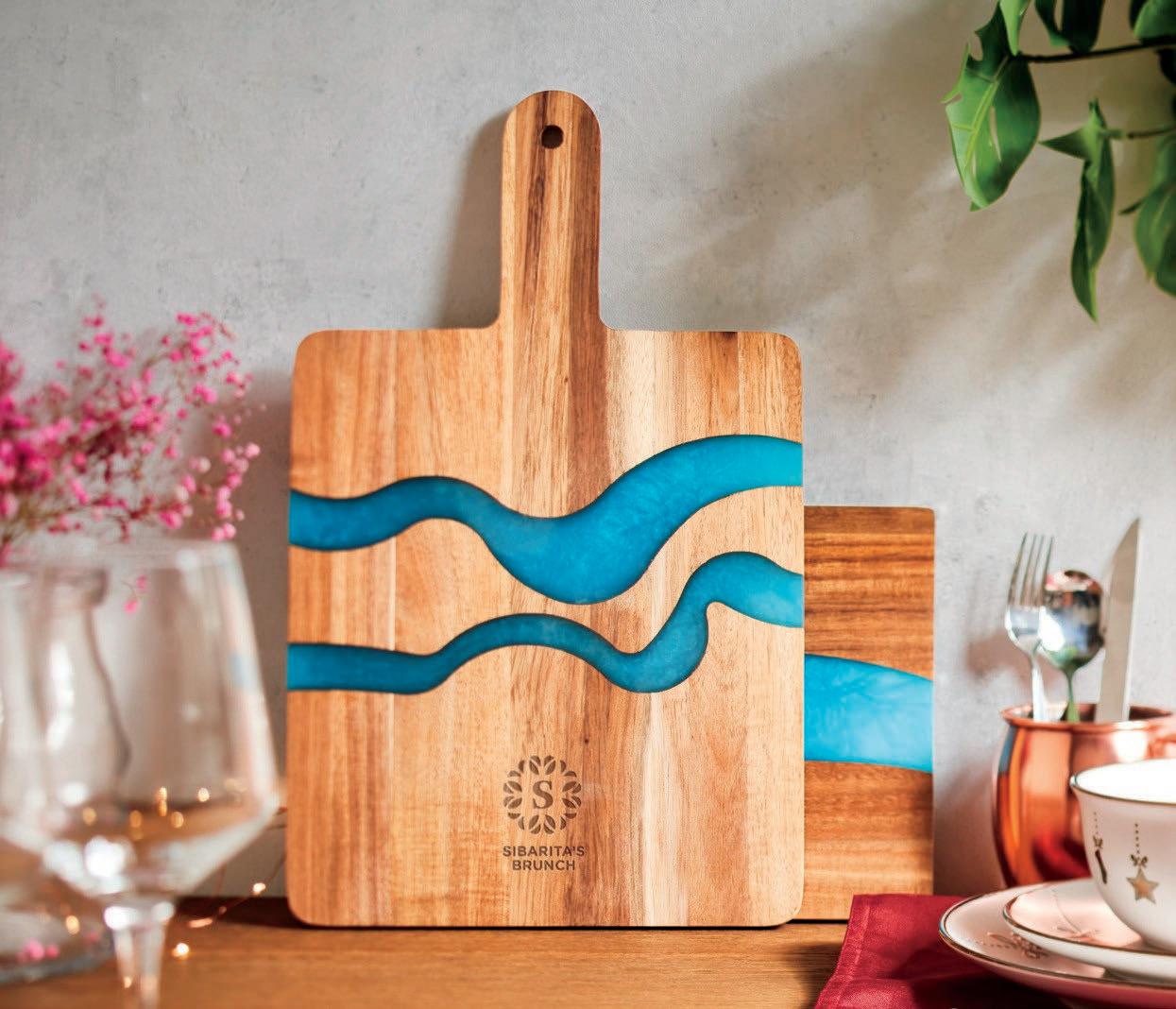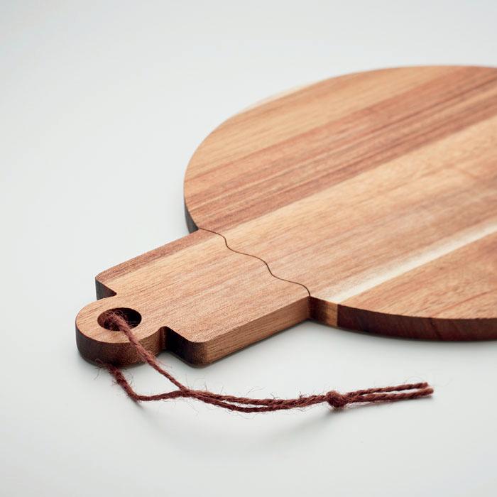 Acacia wood serving board with in Christmas bauble shape with PU cord