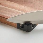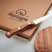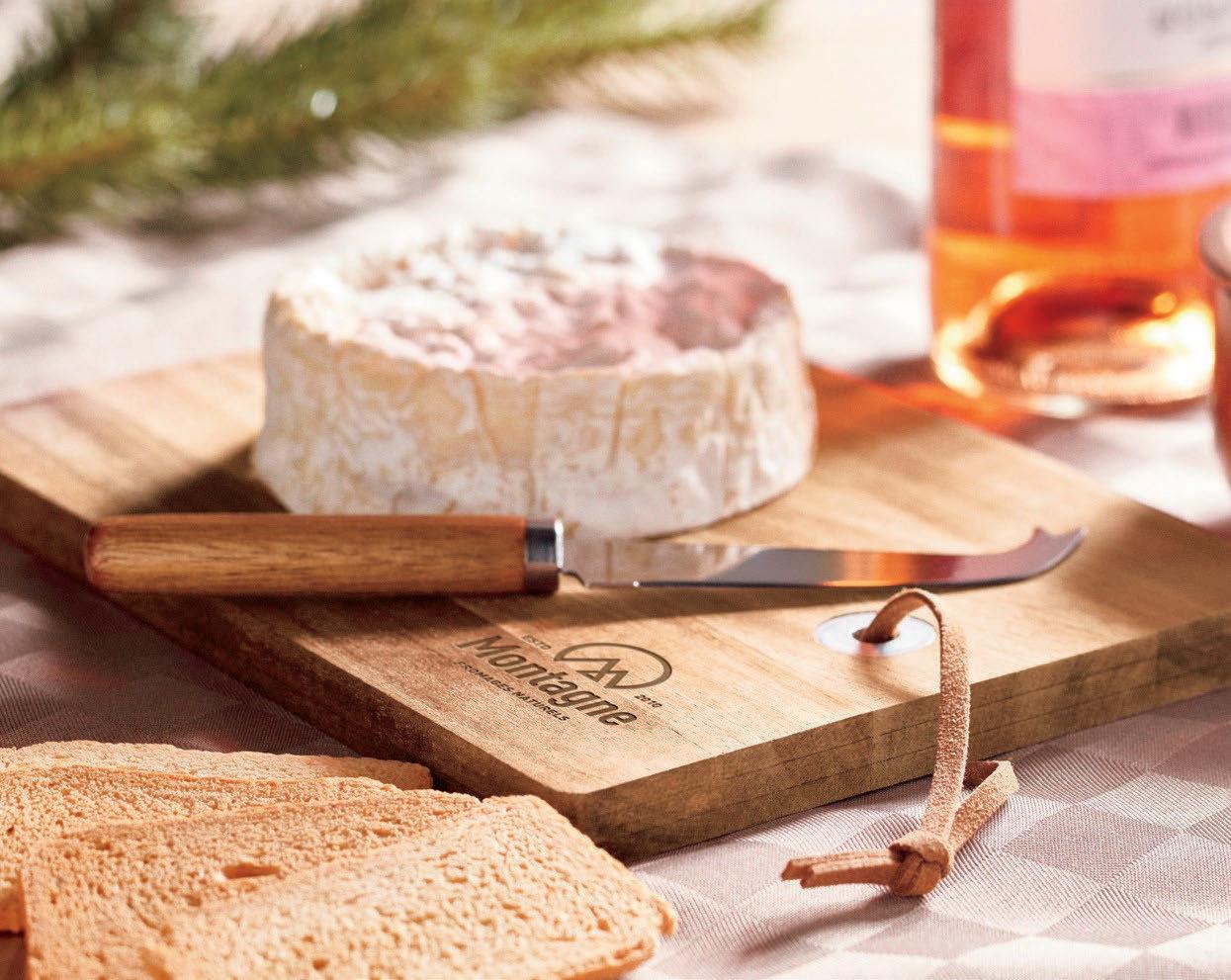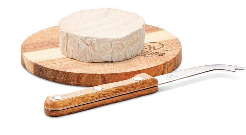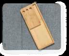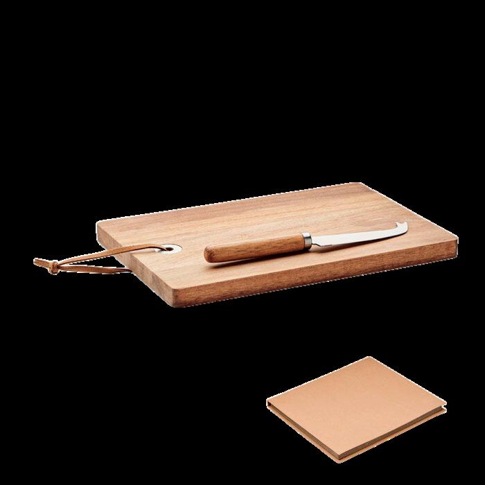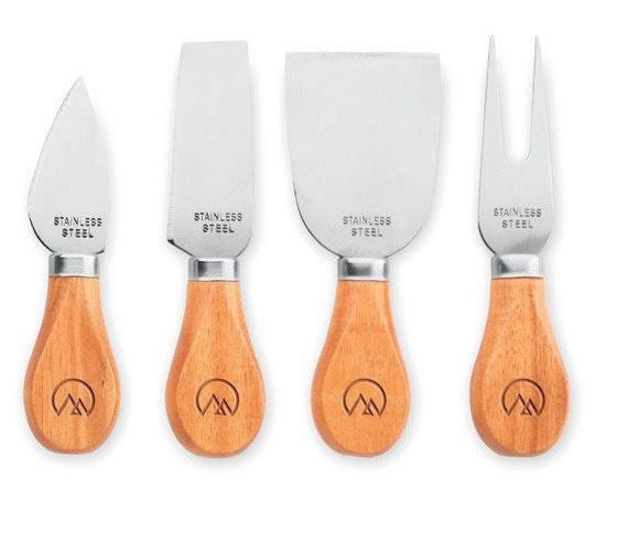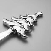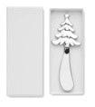 Tree-shaped bamboo cheeseboard set with knife cheese spreader in stainless steel.