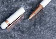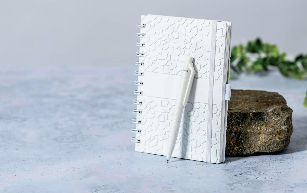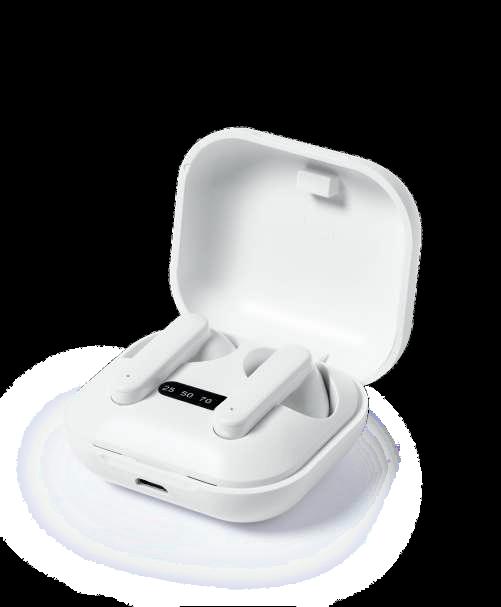 Bluetooth® 5.0 connection, including lithium battery and in an elegant white finish. Made of recycled ABS (RABS), with RCS certification, guaranteeing its recycled origin. Ergonomically designed, including an integrated control button on the earphone, with matching charging base and LED charging status indicator.