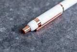 1m extendable charger cable, made of RABS and in elegant white, with recycled leather cables and details.