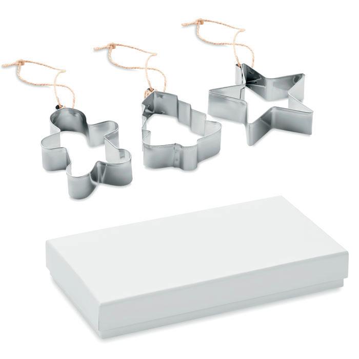 Set of 3 cookie cutters in stainless steel with jute Cord.