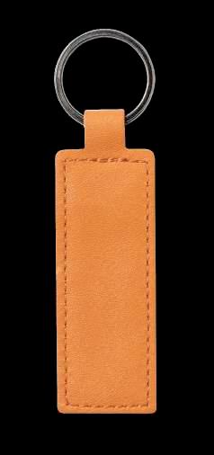Keyring made of recycled leather. In brown tone, with rectangular design and stitched finish.