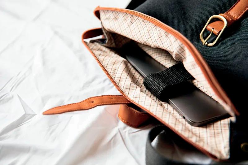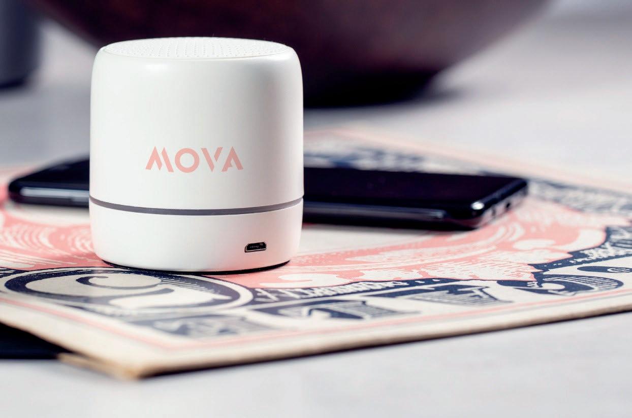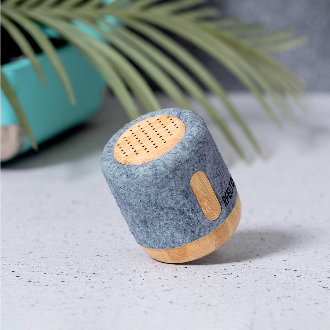 Bluetooth® speakerphone with case made of RABS and lined with recycled leather