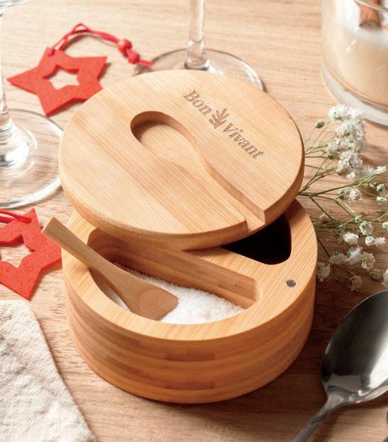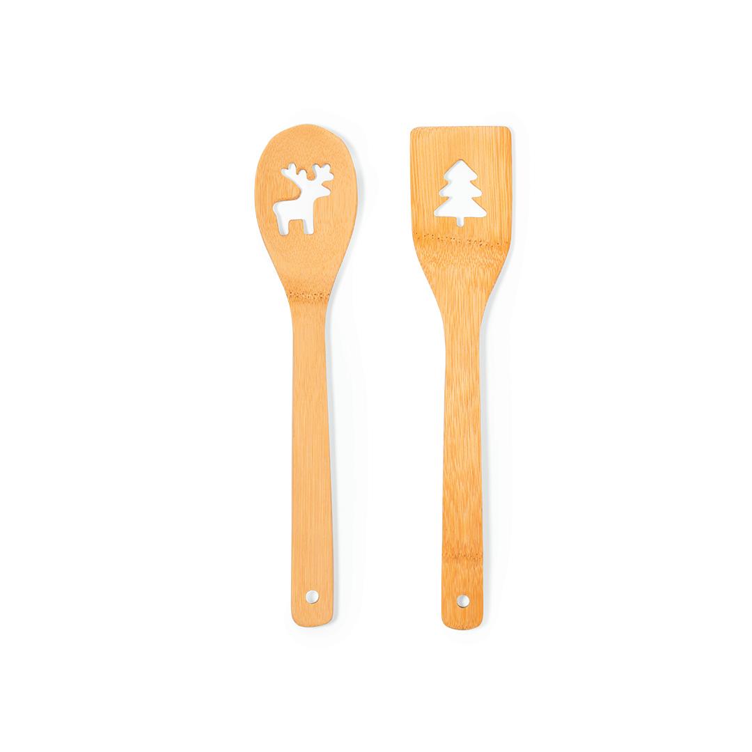 Unique kitchen set with diecut Christmas motifs. Including spoon and spatula made in polished bamboo.
