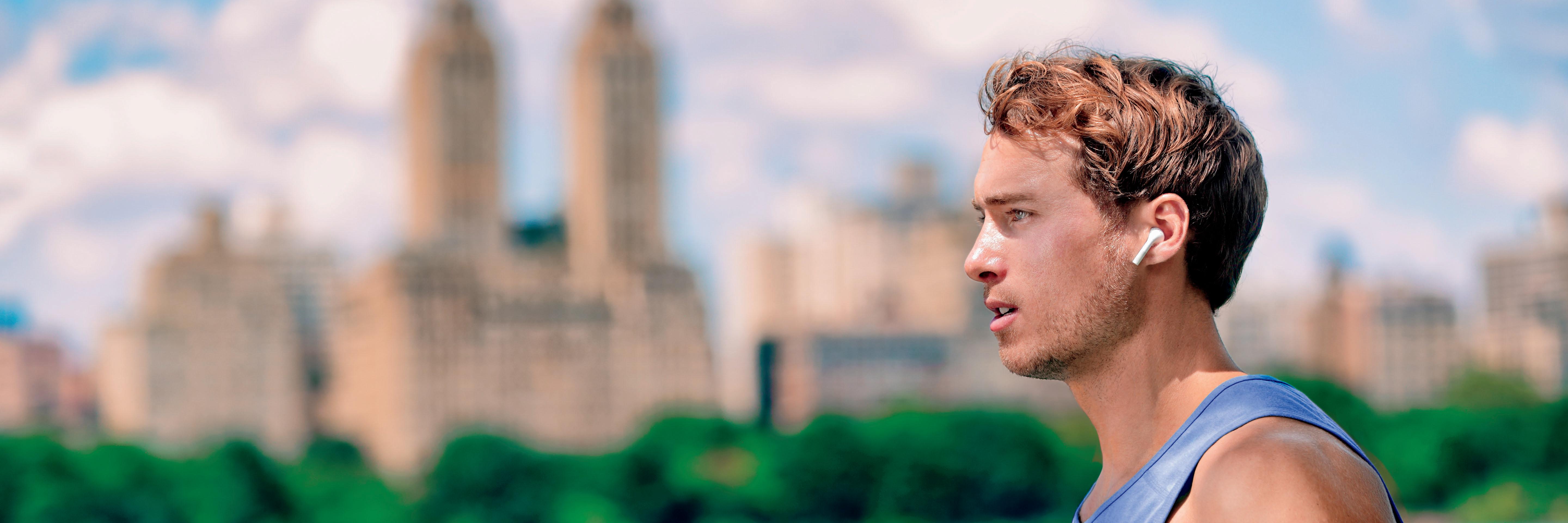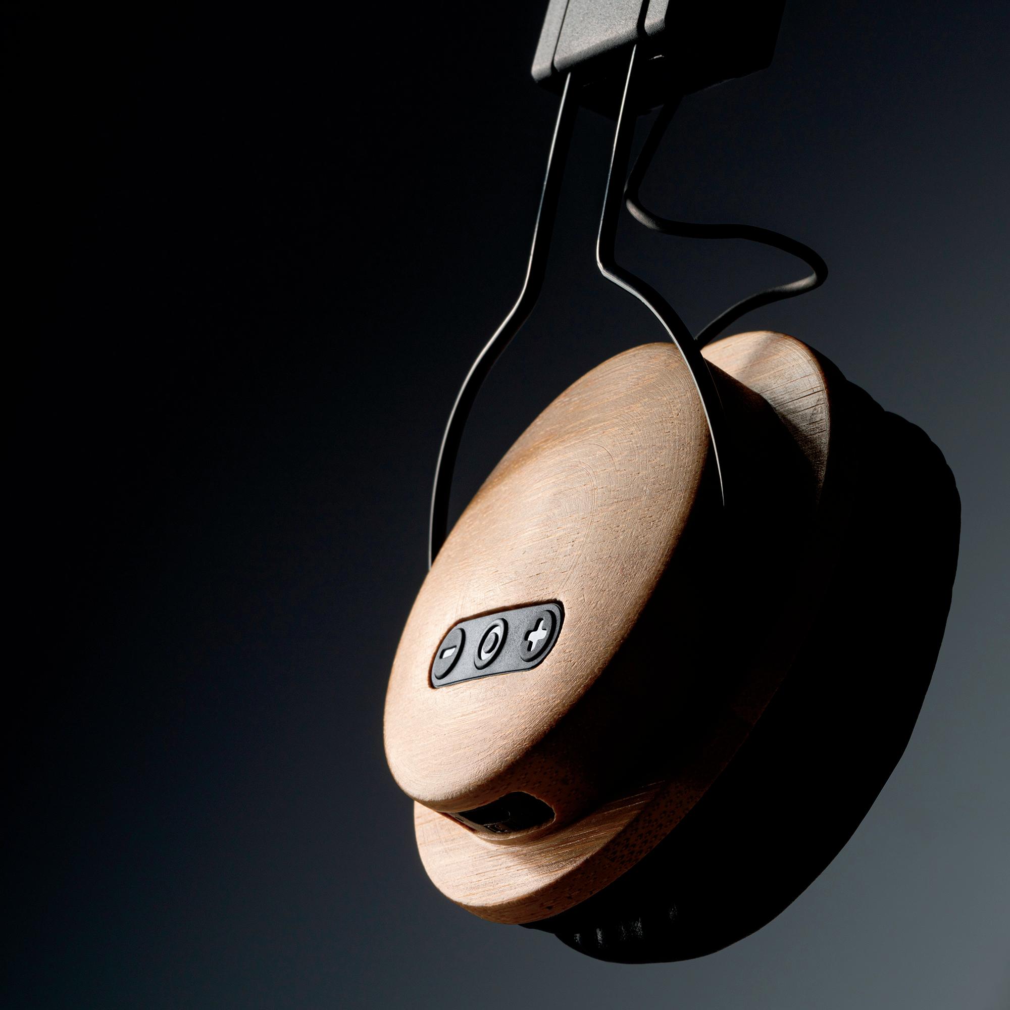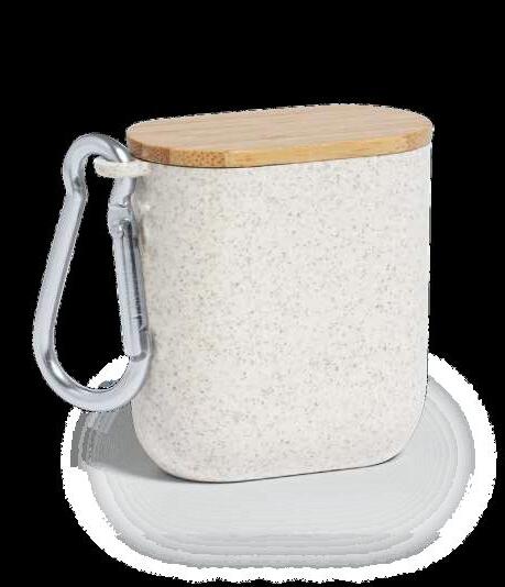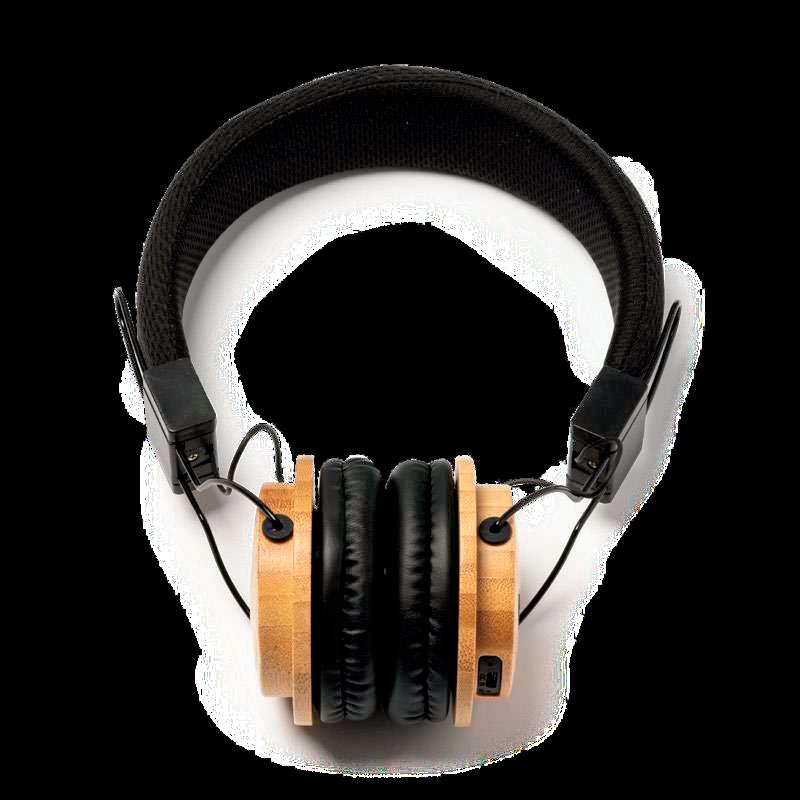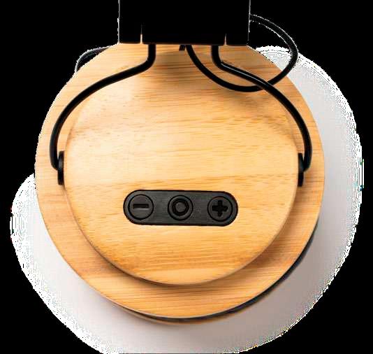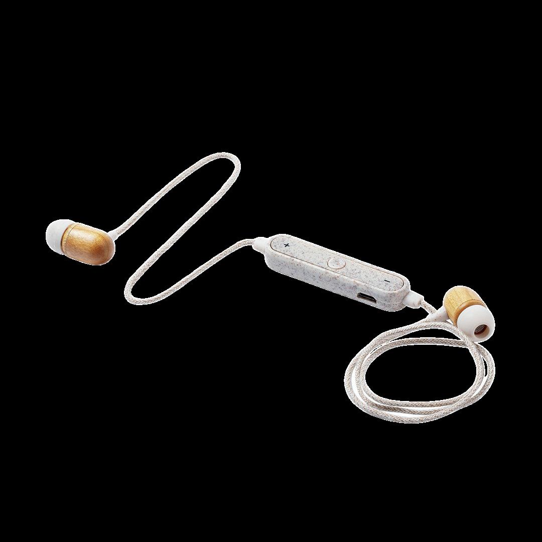 Earphones with Bluetooth® 5.0 connection. Made of a combination of eco-friendly materials: bamboo earphones with a wheat cane case and hemp-covered cables