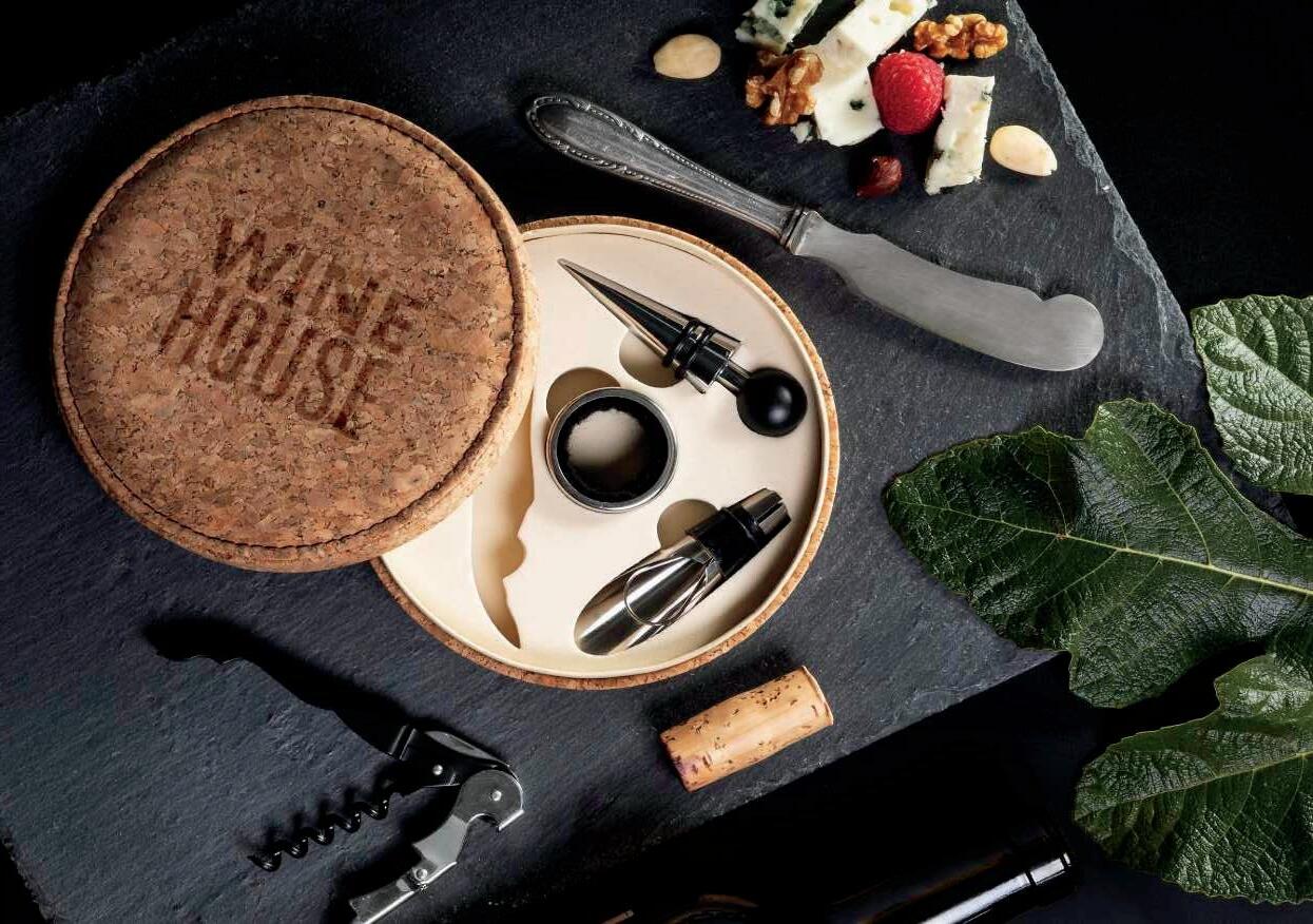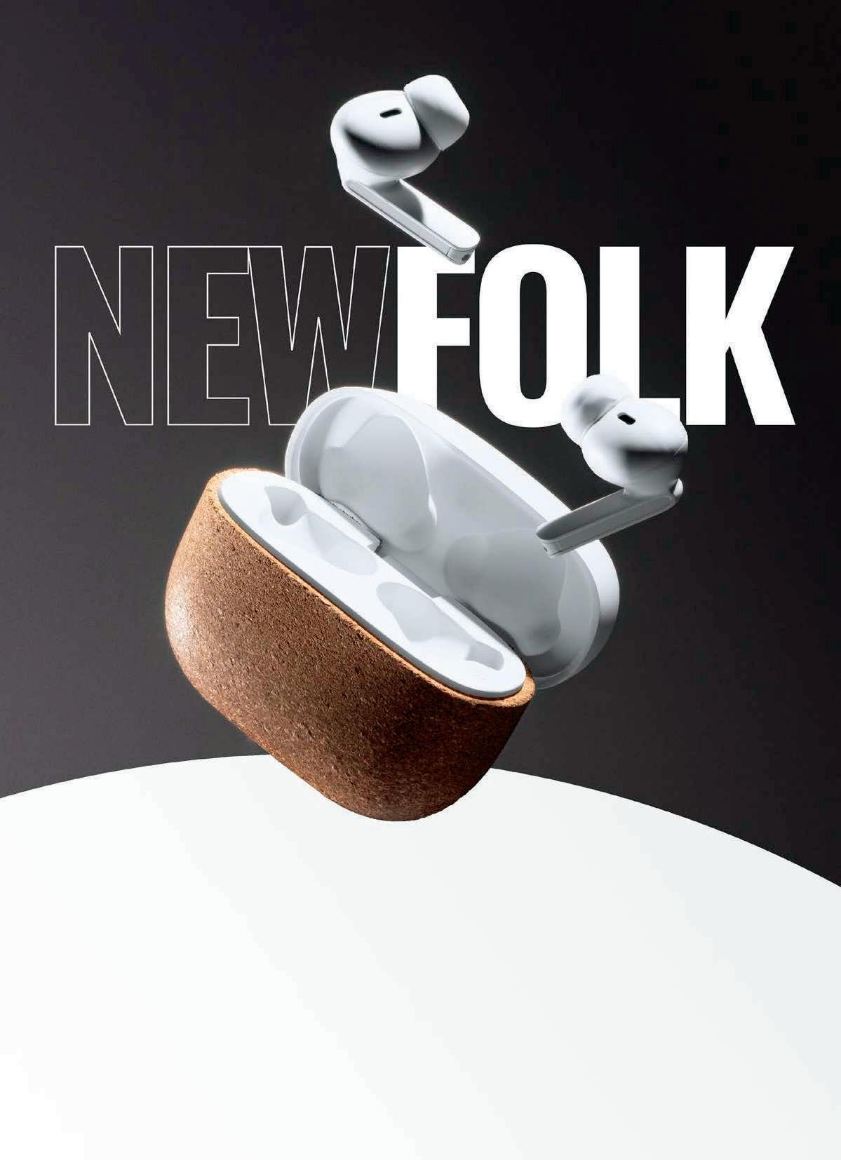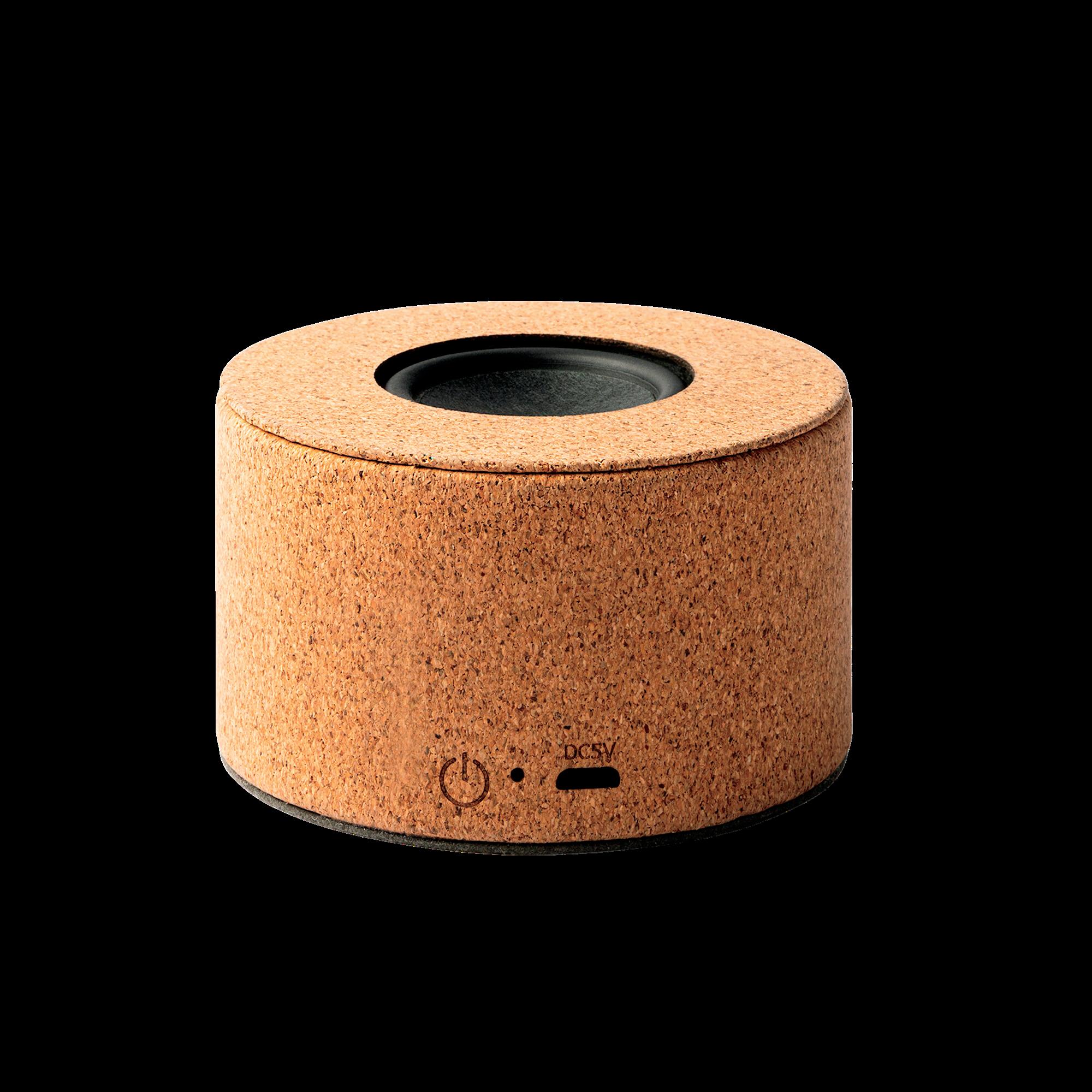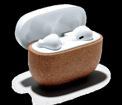 Wireless earbuds in recycled ABS and natural cork. Charging case with rechargable battery. Touch control panel in-built on the earpiece Hands-free function. Type C connection. Cable included