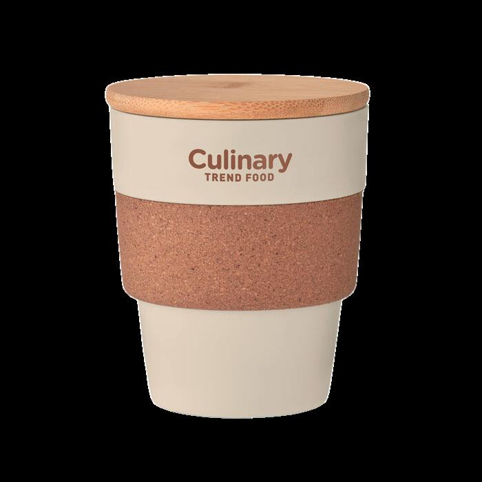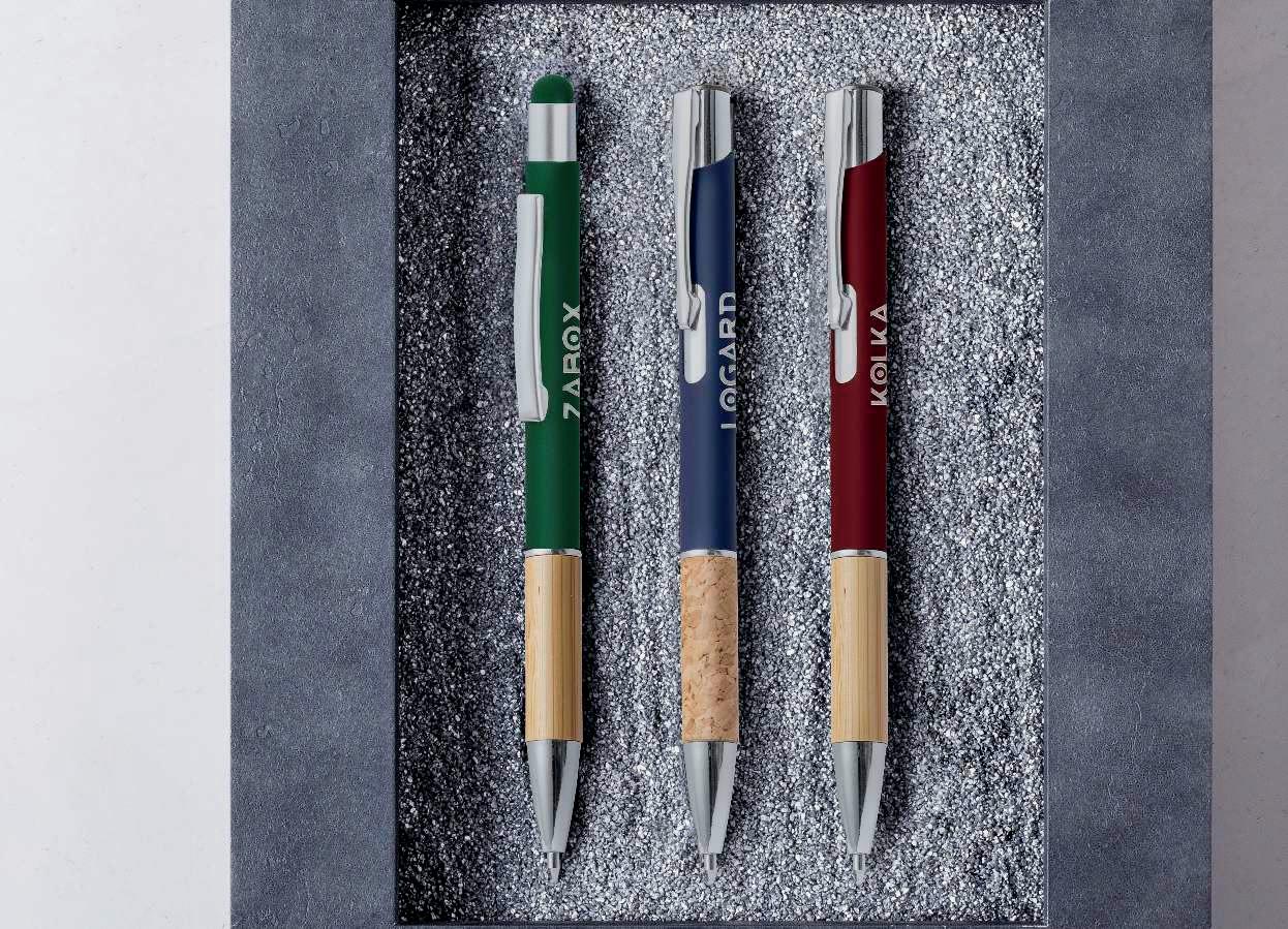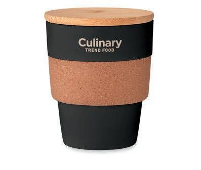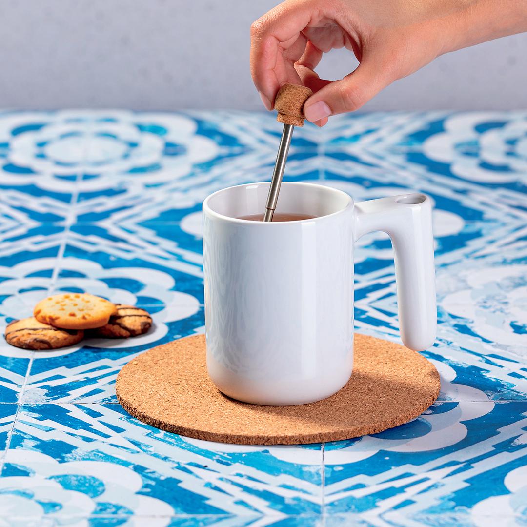 Wireless earbuds in recycled ABS and natural cork. Charging case with rechargable battery. Touch control panel in-built on the earpiece Hands-free function. Type C connection. Cable included