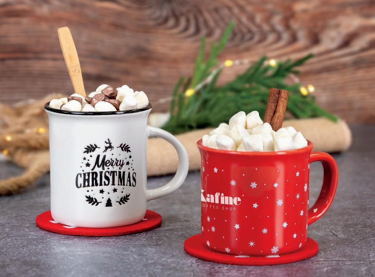 Ceramic mug with vintage Christmas design and 280 ml capacity. With special branding area at the front.