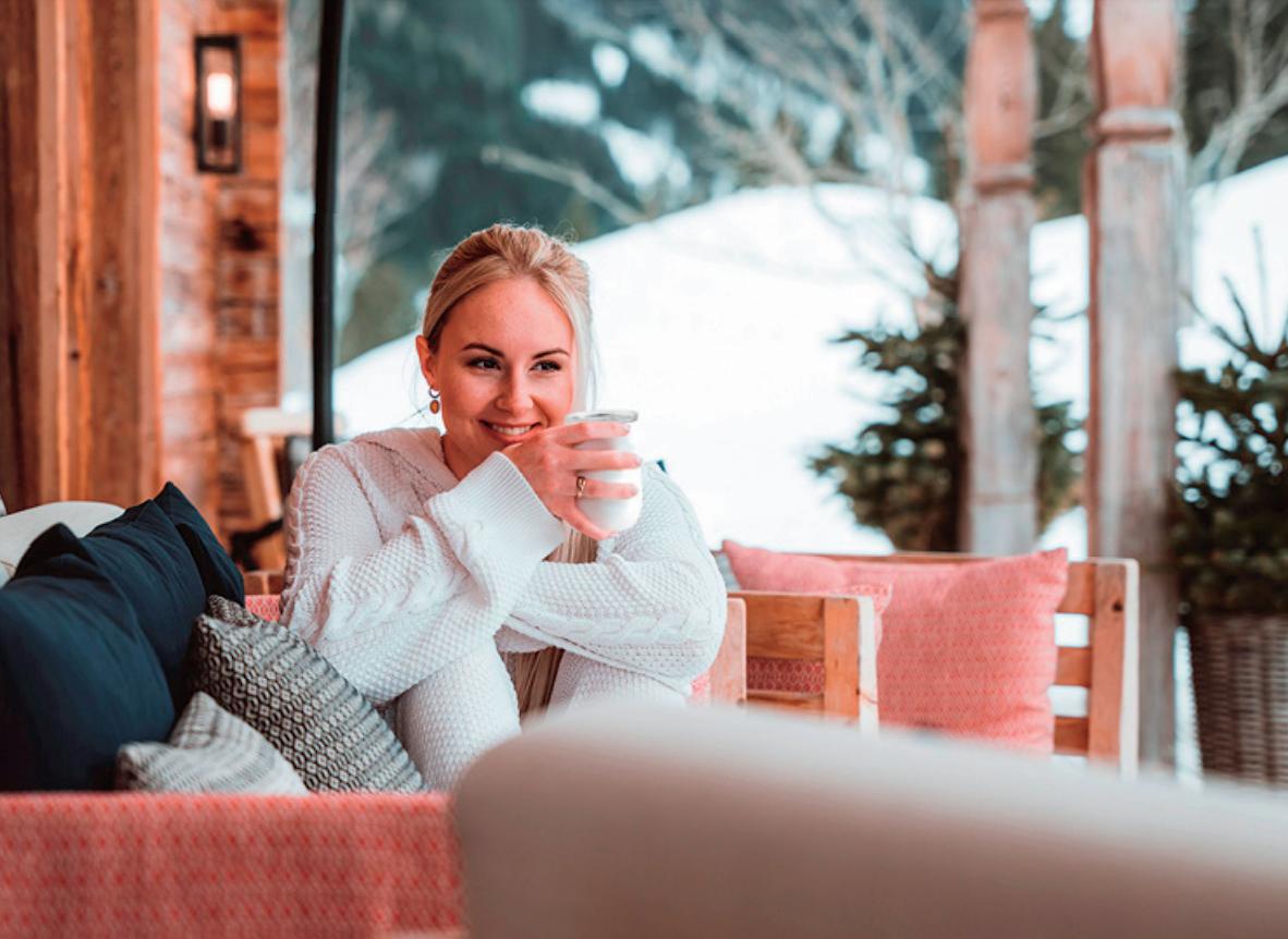 370ml ceramic mug in cheerful inside and outside combination in white with winter designs