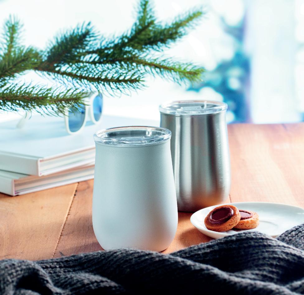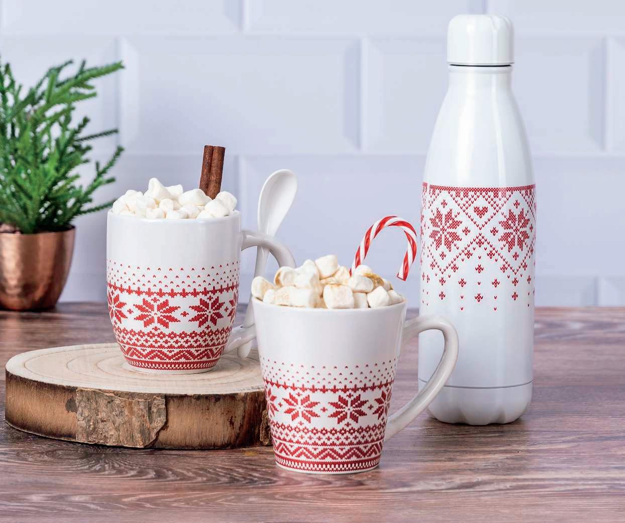 400 ml double wall thermal mug. With original snowflake design and special branding area at the front.