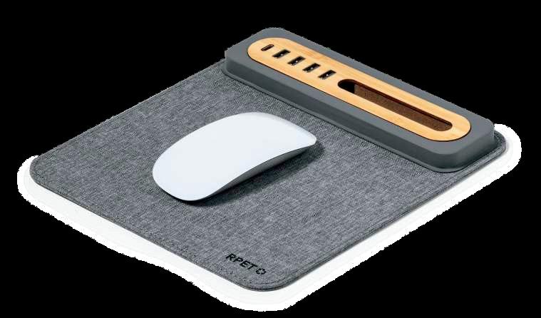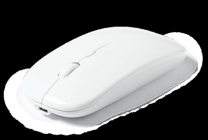 Wireless optical mouse with ergonomic design. Housing made of recycled ABS (RABS) and with RCS certification, which guarantees its recycled origin. USB rechargeable (cable included) and presented in individual eco-design box in kraft cardboard.