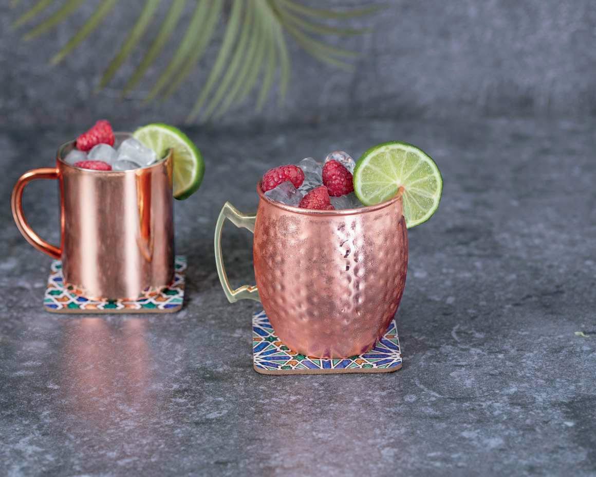 Set of 4 star shaped coasters made in natural cork. Set presented in a design cardboard kraft box with die-cut star design.