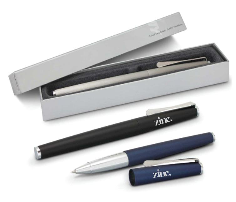 Elegant rolling ball pen with a brushed stainless steel barrel or a brass barrel with matte finish. This stunning pen has a unique propeller inspired clip with matching shiny chrome accents. The LAMY logo is engraved on the upper barrel and it is beautifully presented in a LAMY gift box.