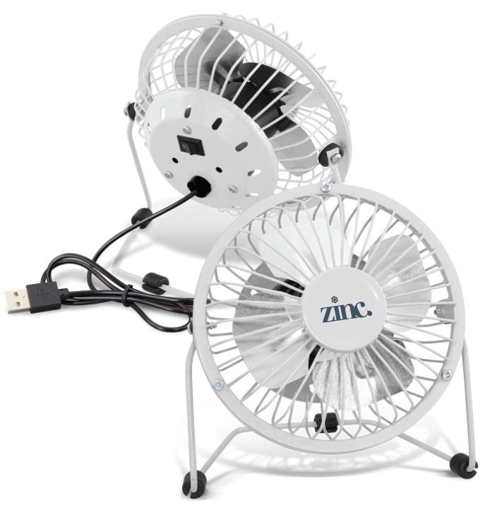 Affordable aluminium desk fan with adjustable airflow direction. It has a one metre power cable which plugs into a USB port or a mains adapter. Presented in a white box with an instruction leaflet.