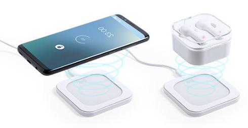 Bluetooth® 5.0 earphones with 5w wireless charging base, compatible with devices equipped with wireless charging technology. Presented in a deluxe individual case with hinged lid and inside an attractive, individual design box.