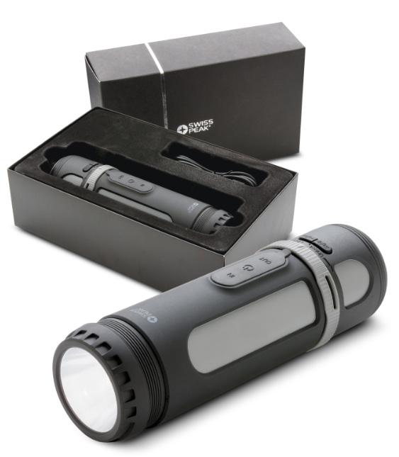 The main unit includes a power bank with a 4400mAh rechargeable lithium ion battery that can be used for charging phones etc. Also included is a 3W Bluetooth speaker which can be connected via the main unit to the lithium ion battery and it will play music for an incredible 18 hours. The main unit is rain and dust proof and has a 250 lumen LED lantern as well as a four-function torch.