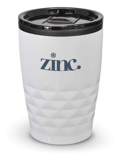 Trendy 400ml BPA-free double wall coffee cup which will keep drinks hot for longer. It has a smart diamond patterned stainless steel outer wall and a polypropylene inner wall. Urban has a secure plastic push on lid with a splashproof sliding closure and a soft non-marking base.