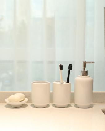 LOTION DISPENSOR CUP MU-038 7.5x7.5x18cm MU-037 7.5x7.5x10cm SOAP DISH MU-036 9.7x2.3x15.3cm