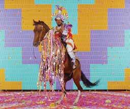 La giovane star dell’arte Alex Da Corte (Camden, NJ, USA, 1980) lavora con la pittura, la scul tura, l’installazione e il video, appa rendo spesso sotto mentite spoglie nei suoi flm, interpretando fgure iconiche come Braccio di Ferro o la Statua della Libertà. Conquista gli spazi con il colore all’intersezione tra design e cultura visiva. La mo stra al Louisiana è la prima presen tazione approfondita delle sue opere in Europa. Qui si possono incontra re sia le prime opere sia lavori com pletamente nuovi in una scenografa travolgente, concepita dall’artista, con pavimenti appositamente pro gettati, pareti dai colori vivaci, luci al neon e profumi caratteristici: tut to sommato, è come entrare in una realtà parallela.