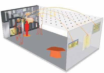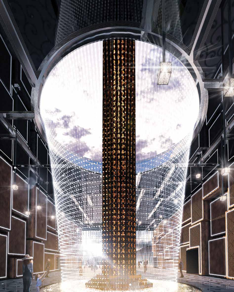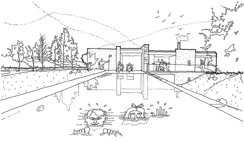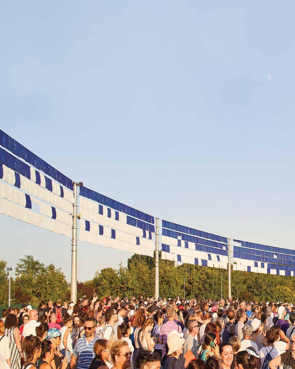 des relations sociales empreintes de son sens particulier de l’urgence et de l’humour. L’installation se nourrit de l’intérêt que l’artiste porte depuis longtemps à l’architec ture pour plonger les visiteurs dans un espace propice à la réfexion, en offrant de nombreuses possibilités d’ac cès et de perspective et en explorant la manière dont les relations entre le pouvoir spatial et politique sont invaria blement liées à des notions d’inclusion et d’exclusion, de domination et de rôle.