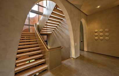 La Calce del Brenta is one of the protagonists of the new winery by Leonildo Pieropan in Soave (Italy), a cutng-edge concept signed by Moreno Zurlo, studio A.c.M.e. The words identfying the architectural materials match those used for defning the cultvated lands. Within this organic view of the project, the lime fnishes by La Calce del Brenta used for the entrance hall, ofces and recepton area, perfectly adapt themselves to the spirit of the project. For instance, the Contrasto fnishing (in the Tabacco 5082 shade and Beige) evokes the feeling of cement, even though it’s lime-based or Riva, a Cashmere colour variaton brightens the walls of the entrance hall and ofces.