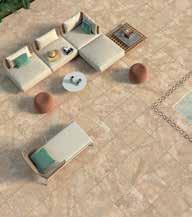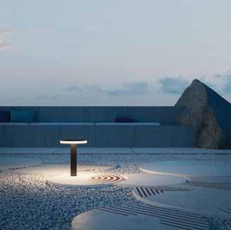 TERZADIMENSIONE, an Italian company specialising in large porcelain stoneware slabs, has brought out fve striking porcelain stoneware collectons creatng a kaleidoscopic system of rugs, walkways, tables and lamps to reinvent outdoor spaces and how they are experienced. They include Pas Japonais,, a contemporary twist on the kind of walkways found in Japanese Zen gardens. Five pebbles are made from one single 20 mm thick porcelain stoneware slab: a large pebble with a 122 cm diameter and four 61 cm smaller ones. Whether round or half-moon, the individual pieces can be freely combined together in an array of constantly changing paterns. From private gardens and terraces in parks to green spaces in hotels and the entrances to business ofces, the TERZADIMENSIONE’s outdoor furniture system can enhance open spaces through a contemporary reinventon of ceramics.