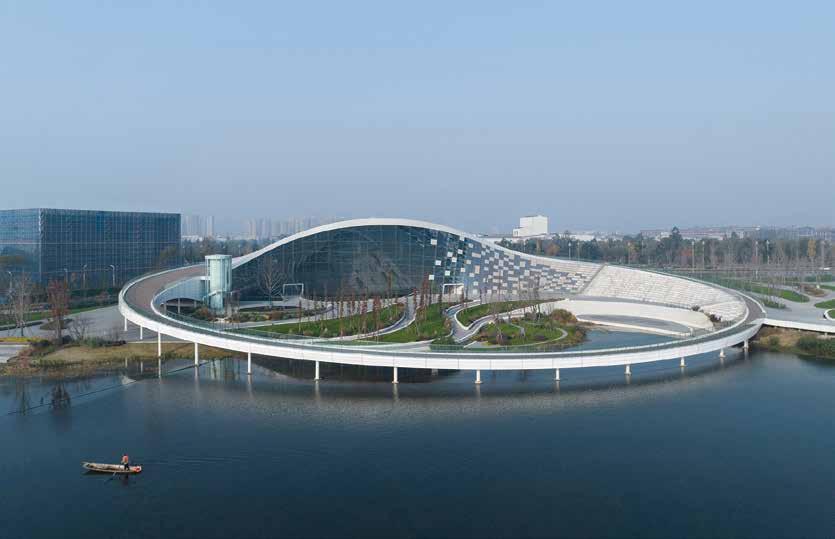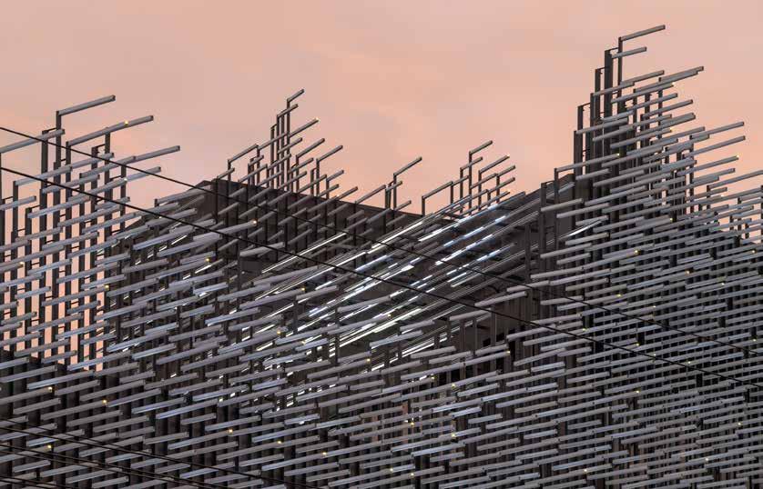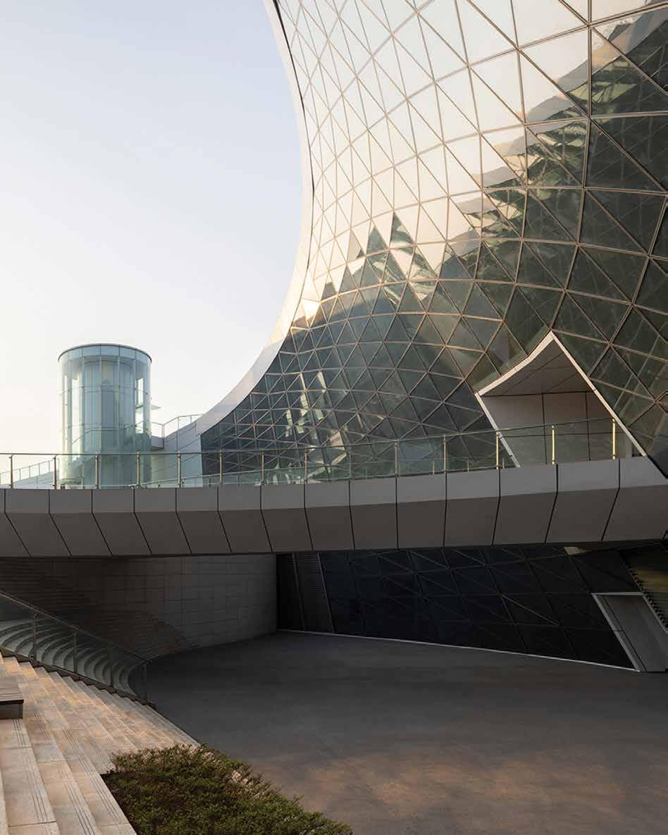 MVRDV designed a façade studded with 6,988 handcrafed glass “diamonds” for the Tifany & Co. shop in Shanghai evoking this famous jewellery brand’s design philosophy of innovatve materiality, a strong sense of three-dimensionality and the ability to inspire wonder. During the day, the ‘diamonds’ refect and refract their surroundings, creatng a shimmering efect, while at night, LED lightng on the façade enable the shop to glow in an endless range of colours. Each of these glass diamonds is 21 centmetres wide and 13 centmetres high, weighing 1.5 kilograms. They are suspended on thin steel cables, coated with a mirror steel fnish and stretched between the upper and lower frames of the structure. These very thin cables ensure the diamonds do not move or rotate on their supports. Thanks to the atenton to detail, the façade uses only mechanical connectons, so it can be fully disassembled, and its parts reused or recycled in the future.