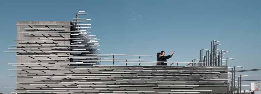 Precursore della fotografa scenica, James Casebere (1953) opera alla convergenza tra architetura, fotografa e scultura esplorando nuove dimensioni dello spazio e della luce che sotendono una visione biomorfca del design e una presa di coscienza delle problematche sociali e ambientali. Le sue opere sono il risultato di un approccio creatvo partcolarmente originale che ha sviluppato a partre dagli anni Otanta. Si trata sostanzialmente di fotografe di modelli di architetura che l’artsta americano realizza in gesso, cartone e polistrene e che poi fotografa giocando su efet di luci e chiaro scuro partcolarmente scenografci. Punto di partenza sono edifci di architet moderni e contemporanei che grazie a questo processo di reinterpretazione artstca vengono trasformat in immagini bidimensionali partcolarmente pregnant, spesso circondate dall’acqua, simbolo dell’inconscio, del trascorrere del tempo e della memoria, ma anche delle preoccupazioni ambientali dell’artsta. La mostra “Seeds of Time” organizzata dalla galleria Sean Kelly di New York il luglio scorso ha presentato una serie di lavori recent che indagano il potenziale dell’architetura nel promuovere soluzioni sostenibili e socialmente responsabili, da Balconies e Stairs ispirat al complesso residenziale Aranya di Balkrishna Doshi, in India, a Pato with Blue Sky e School che reinterpretano lo Startup Lions Campus di Francis Kéré in Kenya.