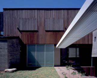 and timber cladding. The materials express the different programmatic volumes within the house, but also delineates the boundary between the city and the home. The outer skin of the house becomes the landscape of the city.