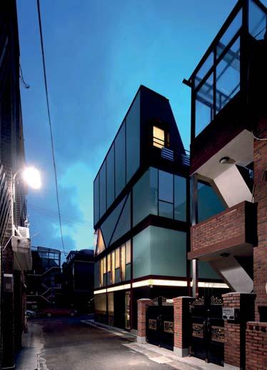 of wholeness, singleness and indivisibility characterizes the architectural works by Kim Seunghoy. Assuming a posture of introspection and contemplation, without any hint of aggression or condescension, his work stands apart from the surroundings, asserting its solitary presence. Each building precariously carries the weight of its own existence in isolation, maintaining a courteous distance from the neighboring buildings. Some theorists of Korean architecture have noted that this strategy of self-isolation is a way of reconciling the “chaotic condition of architectural practice and the autonomous principles of architecture.” Indeed, to practice architecture within “an urban reality virtually devoid of architectural language,” Korean architects must re-interpret this discursive void as a “positive gap” and treat each of their buildings as a fragmented soliloquy, speaking into the void, and internalizing the language to the point of silence. “The positive fragment,” in the words of Pai Hyungmin, “must take advantage of these gaps. It is these productive gaps that drive the dynamic of a different kind of relation between words and things.”