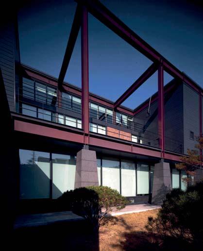 the blurred boundaries between inside and outside, reminiscent of the introverted yet open ambiance within the courtyard of a Korean hanok. His fascination with Mies motivated him to complete