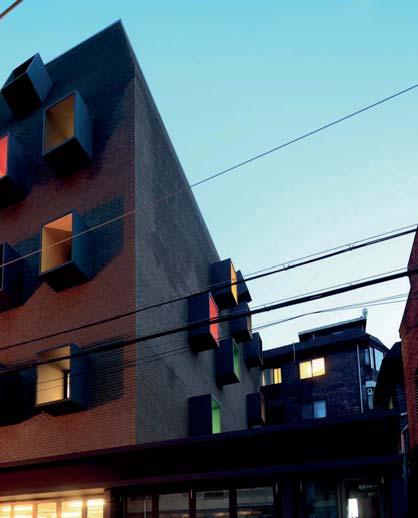 of mystery in each site. Similar to land art, which landscape, the architecture of KYWC revitalizes the place, and ultimately brings back the lost allure of for careful arrangement of people and composition of spaces to frame a new episode of life. The buildings by KYWC may resemble a winter tree, a black cat, or of its uncertainties and messiness that transforms an assembly of inanimate materials into a life form.